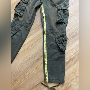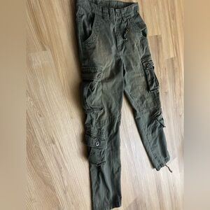Size 29-see pictures. Super cool trendy vintage slouchy front high rise straight wide legged navy green military combat pants with distressing.