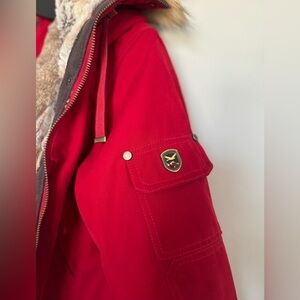 1 madison expedition red parka with faux fur lining from their heritage collection. so warm and cozy!