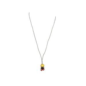 This necklace showcases a unique blend of gold and red beaded accents on a sleek black cord, offering a bohemian touch to any ensemble. Its handcrafted design ensures each piece is one-of-a-kind, making it a distinctive addition to jewelry collections.