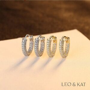 Elegant Pave Huggie Earrings in Gold & Silver. 925 Sterling Silver. #1004