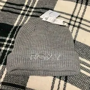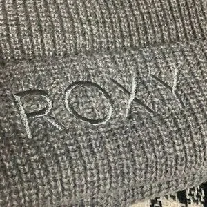Grey knit style winter beanie hat. “ROXY” Embroidered across the brim. 100% acrylic. New with tags. Water repellent.