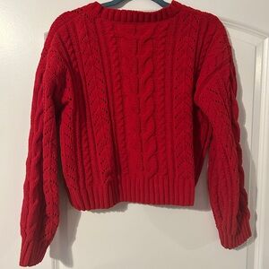 Purchased and never ended up wearing (though I did remove the tags) Stay cozy and stylish with this vibrant red cable knit sweater. Perfect for layering or wearing on its own, this sweater adds a pop of color to any outfit.