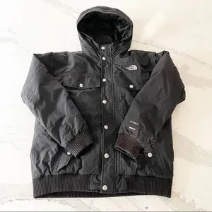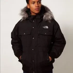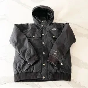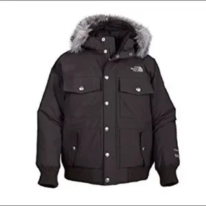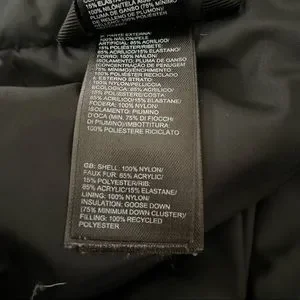First and last photos are stock photos to show what it should look like with the faux fur trim on hood. Some wear on snaps finish, some fading on knit cuffs and hem, otherwise in really good used condition