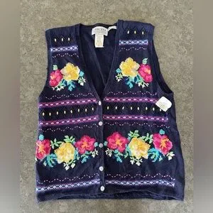 Vintage Jantzen hand embroidered Floral Button Down Cottagecore Vest