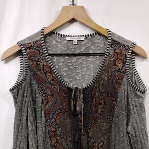 John Mark Paisley Cold Shoulder Top Women's XL Gray Boho Retro Cottagecore