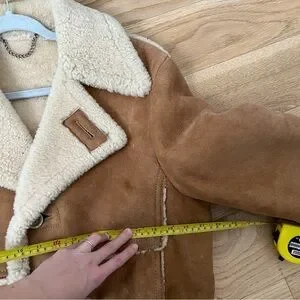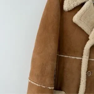 Vintage sears the leather shop suede and Sherpa coat. Very unique and stylish. Nice heavy material. There are some blemishes. See photos.