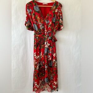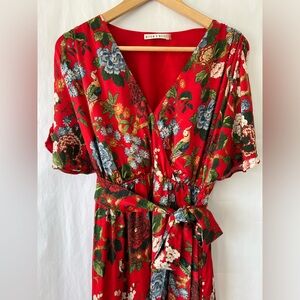 Alice + Olivia Clarine Silk Red Dress Floral Wrap Size 6