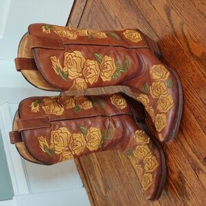 Beautiful yellow rose cowgirl boots from Corral with lots of life left in them. Snip toe style. Scuffing on toes.