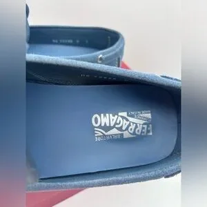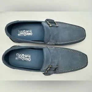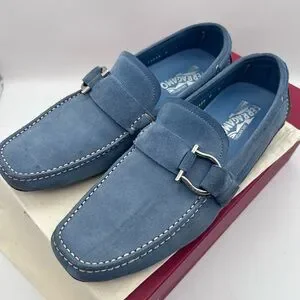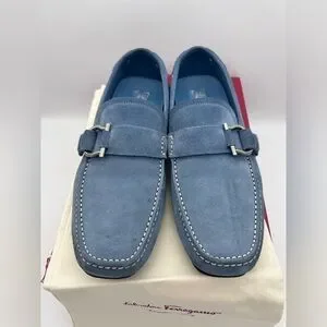 Salvatore Ferragamo Men Driving Suede Blue Moccasin Loafers Logo Sz 9 D