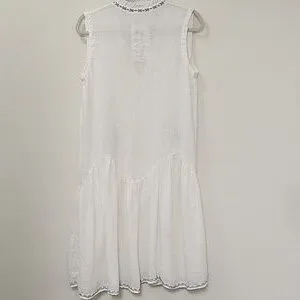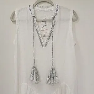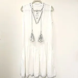 Jonny Was Pete & Greta White 100% Linen Chunky Tassel Boho Drop Waist Dress XS