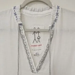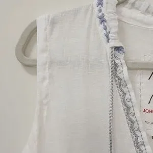 Jonny Was Pete & Greta XS White 100% Linen Chunky Tassel Boho Drop Waist Dress