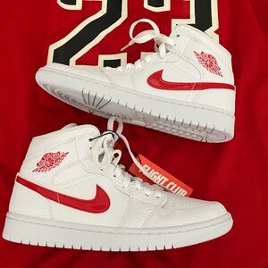 Nike Air Jordan 1 Mid White University Red Sneakers - Brand New Shoes