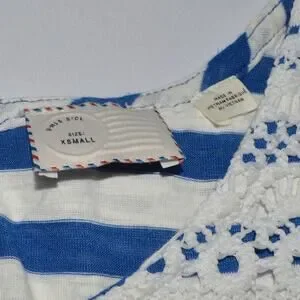 Anthropologie XS women's lace tank blue and white striped by postmark