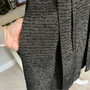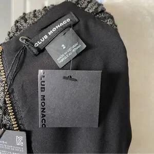 Lovely Club Monaco Davin Fit and Flare Dress in black tweed. V neck. Box pleated skirt. Hip pockets. Exposed zipper in back. Size 2. Pit yo pit approx 17 1/2”. Waist approx 14 1/2” across. Length from shoulder 35”. Brand new with tags.