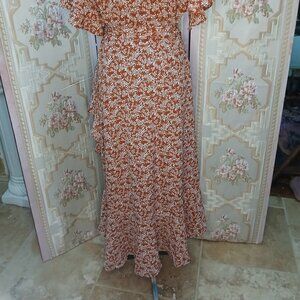 Terracotta Max Studio wrap carnation midi ruffle flutter dress size XL orig $128