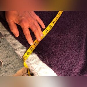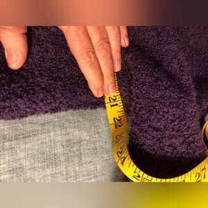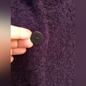 Purple jacket, 95% wool, 5% nylon. Lining: 52% nylon, 48% acetate. Pit to pit 21”, sleeve length 22”, shoulder to hem 22”. Made in USA. Dry clean only. Super cute and WARM.
