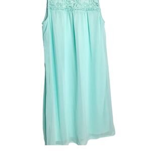 As U Wish mint green a-line sheer lined dress with sheer crochet panels at neckline and keyhole and button back closure