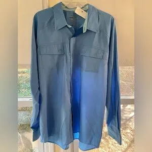 Never been worn Huk Performance Longsleeve, color light blue. Lightweight, vented longsleeve collared button down fishing shirt. Perfect for fishing, but can dress up for work or dinner.