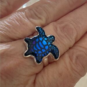 SALE! Adorable Dichroic Glass Sea turtle set in 925 Sterling Silver (SIZE 8.5)