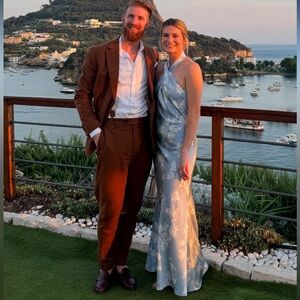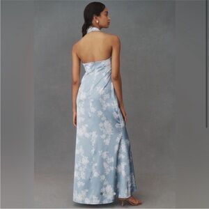 BHLDN Ruby Twist Halter Satin Gown Blue Floral - Size 4