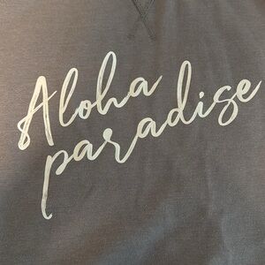 This is just a really nice and comfy sweatshirt for every day wear in the winter. It reads “aloha paradise” on the front and has a fun tropical pattern on the inside making this piece reversible.