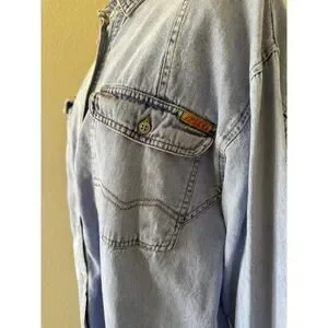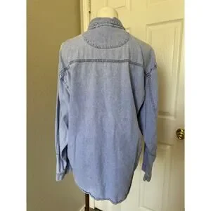 VINTAGE Jordache Shirt Large Blue Jean Denim Button Up 80s 90s