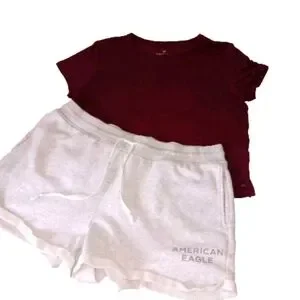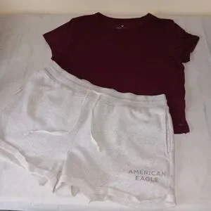 American Eagle 2Pc Bundle Gray Sweatshorts & Burgundy Tee XL