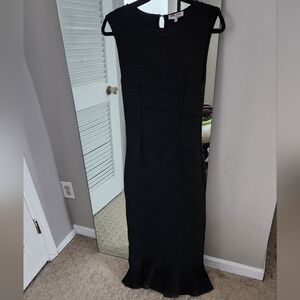 Opening Ceremony Black Lotus peplum flounce hem jacquard stretch midi dress M