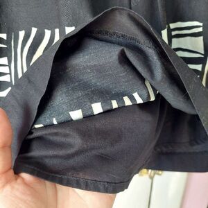 Navigate the concrete jungle in this ferce and flowy tribal tiger striped A-line petite skirt by Talbots made with 100% Cotton, features black underskirt and hidden side zip closure. Bring out your sexy inner tigress!