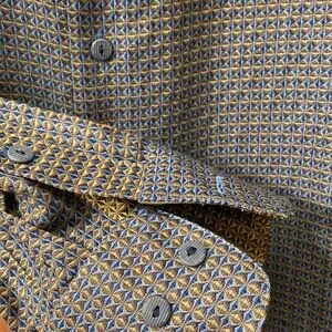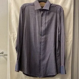 Elevate your style with this Jhane Barnes Men's Blue Patterned Shirt. Perfect for any occasion, this shirt offers a sophisticated look with its unique pattern-that gives off almost an optical illusion-and comfortable fit.
