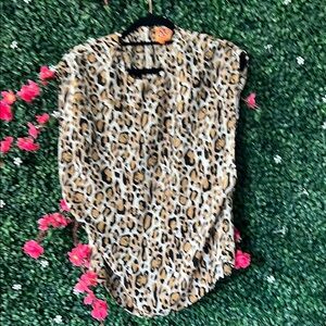 This stylish top features a flattering scoop neck and cap sleeves, designed in a contemporary boxy silhouette. The eye-catching black and brown leopard print adds a bold flair, making it perfect for various occasions. Crafted from a silky material, it combines comfort with a chic aesthetic.