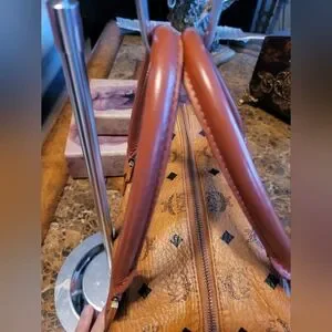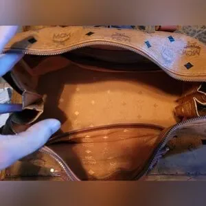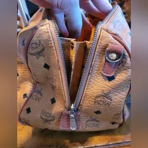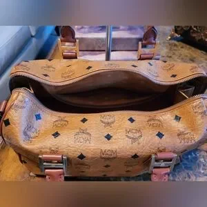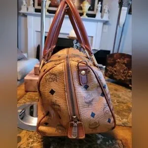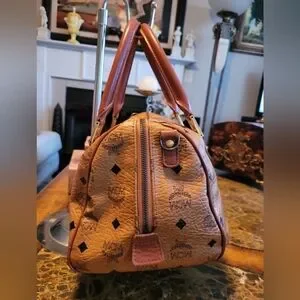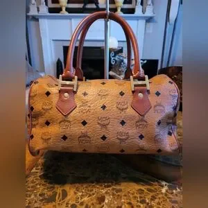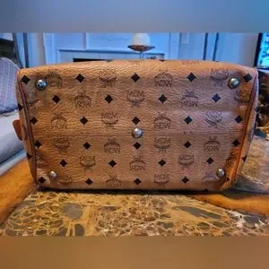 Elevate your style with the MCM Cognac Visetos Satchel Bag. This elegant bag features the iconic MCM logo pattern, perfect for any occasion. The rich cognac color adds a touch of sophistication to your ensemble.