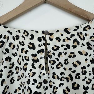 Nine West Women's Cheetah Print Pleated Blouson Long Sleeve Blouse Sz XL
