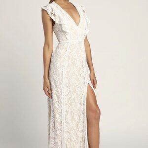 NWT Lulus This Moment in Time White Lace Ruffled Maxi Dress