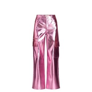 No Boundaries Pink High Rise Metallic Wide Leg Cargo Pants Sz XXS (00) NWT