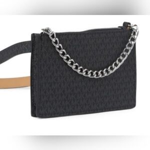 NWT. ON HOLD Michael Kors Signature Belt Bag. Black and Grey With Silver Chain.