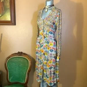NWT Anthropologie Bl^nk / Bl-nk / Blank Lucia Tunic Blouse in Neutral Mot Sz XS