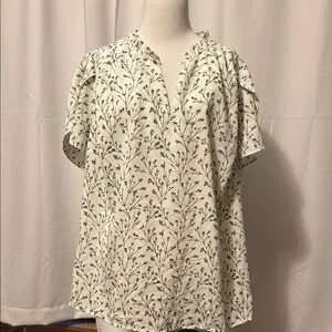 Lightweight blouse. Notched collar, open flutter sleeve. Fits true to size. Smoke free home