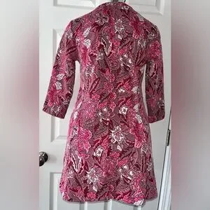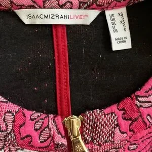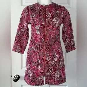 Isaac Mizrahi Live! Floral Knit Pink/Red Jacquard 3/4 Sleeve Topper Coat size XS