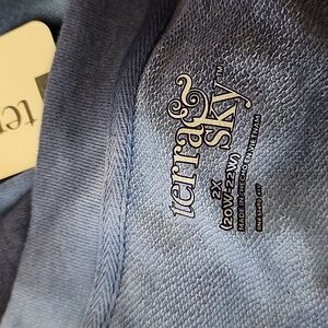 NWT blue tie dye v-neck high low plus size sweatshirt. Side slits. Super soft terry cloth like sweatshirt. 29" front length, 32" back length, 29" sleeve length.