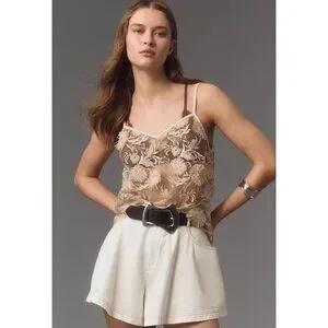 Eva Franco Anthropologie Floral Applique Beige Lace Cami NWT