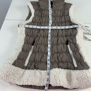Calvin Klein Performance Size XL Taupe Puffy Vest With Cream Faux Shearling