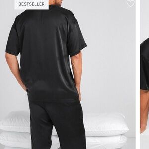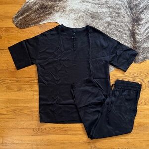 **SOLD** LAHGO NWOT Washable Silk Pajama Tee Pants Set in Immersed Black Size M