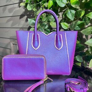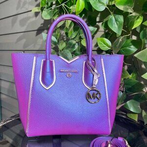 GORGEOUS, ONE OF A KIND, IRIDESCENT Fushia & Mirrored Mauve Leather Michael Kors Crossbody / Tote Bag & Matching Wallet!