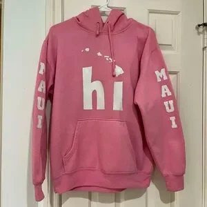 Maui Hawaii Island Pink Hoodie size medium. Approximate measurements listed below! There is a stain above the i and another on one of the sleeves - both are pictured.