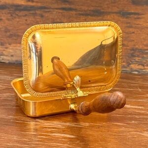 Vintage Italian 24kt Gold Plated Silent Butler Crumb Catcher with Wood Handle