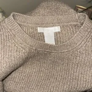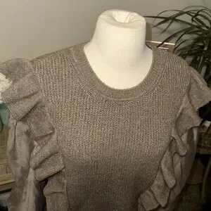 Design History Women's Organza Sleeve Sweater Top, Size Medium Brown Wool Blend