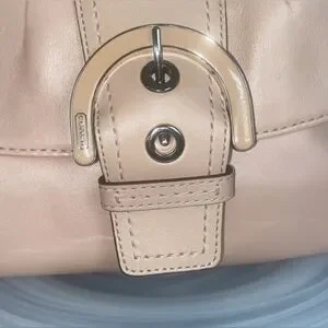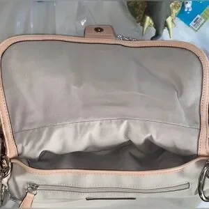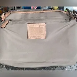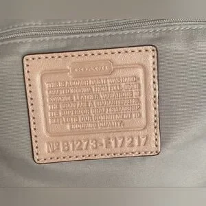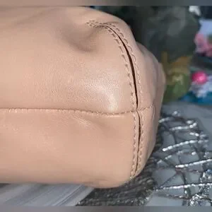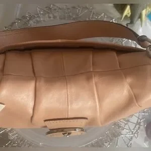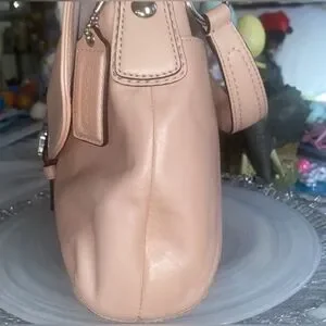 NWT Beautiful peach pearl COACH shoulder bag! Silver hardware! Multiple pockets inside! Clean inside and out. One callout. On top. See photo! It will be hidden by your shoulder. Retails $348