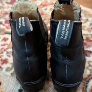 Black leather heeled Chelsea boots by Blundstone. Weatherproof. Excellent pre-owned condition, no marks on upper or sole.