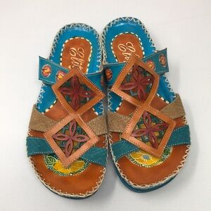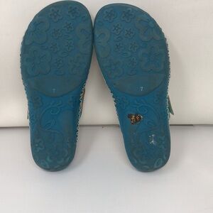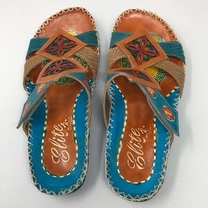 Elite By Corkys Slides Women’s Size 7 Four Points Leather Sandal Turquoise Artsy